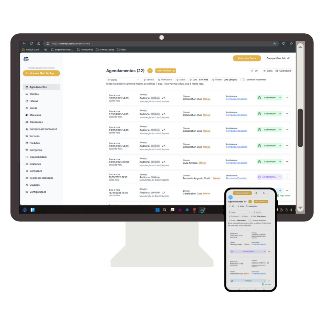 Crescimento médio de 50% no faturamento em 4 semanas, com fluxo constante de agendamentos, novos clientes e vendas automáticas — sem depender de equipe extra ou anúncios manuais.